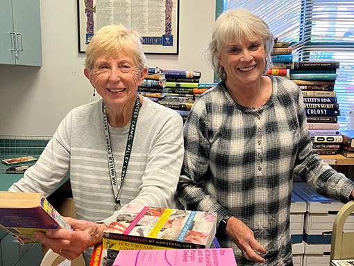 Jean and Ann-Marie sorting the donated books.